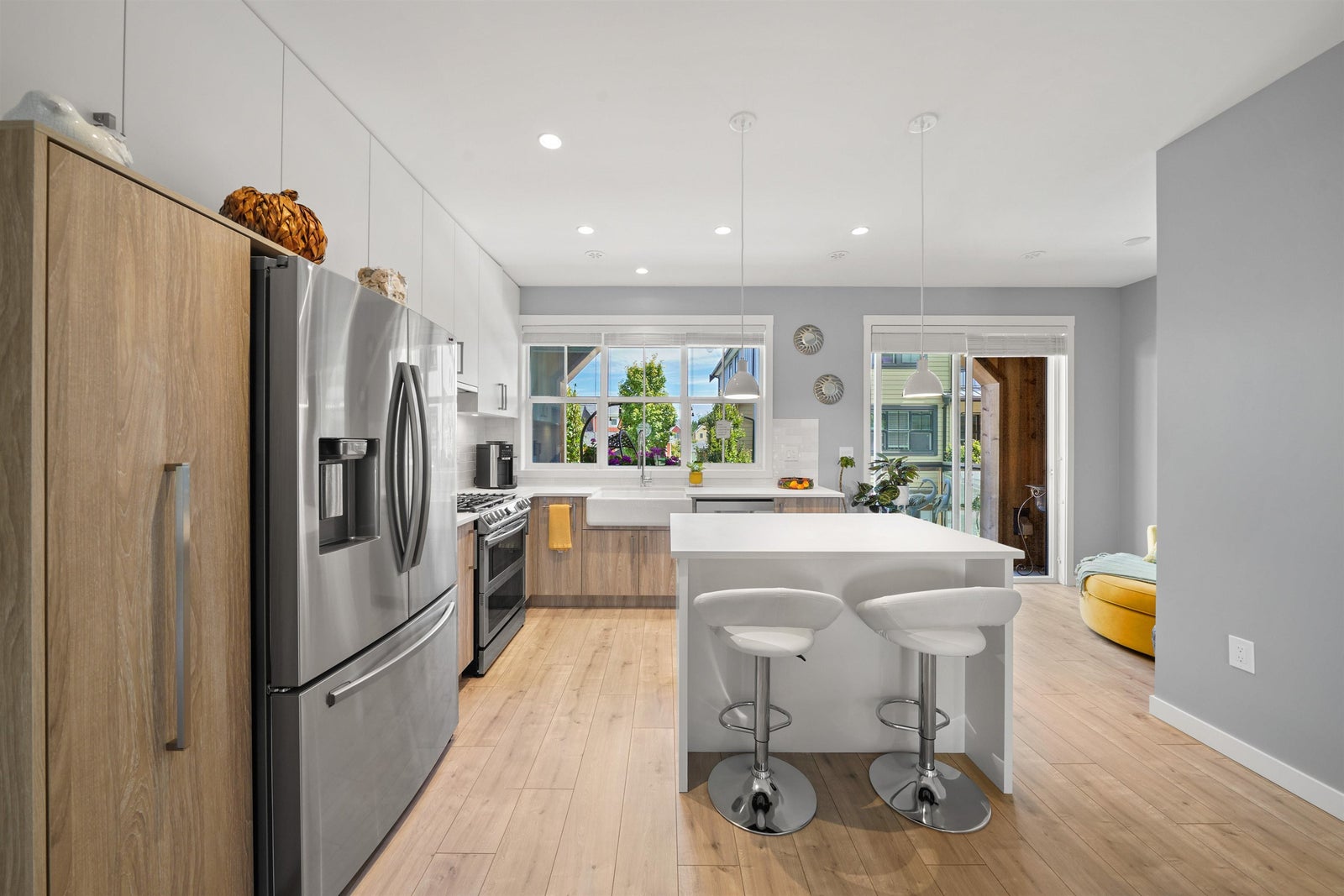 Immaculate 3-bed, 3-bath townhome in the sought-after Southlands community of Tsawwassen. Just 4 years old, this 1,598 sqft. home feels like new. Your main floor features an open-concept kitchen, living, and dining area, plus a powder room & a versatile nook, perfect for a home office. Step outside to your private outdoor space, complete with a BBQ hookup and hose bib. Upstairs, the primary suite offers a large walk-in closet, an ensuite with double vanity, & in-floor heating for added comfort. Two spacious additional bedrooms, a 4-piece bathroom, & laundry room equipped with additional shelving complete this level. What might be the biggest bonus - enjoy an impressive 3 car garage with epoxy floors, storage room, workshop, & EV charger. Don’t miss the chance to own this spectacular home!